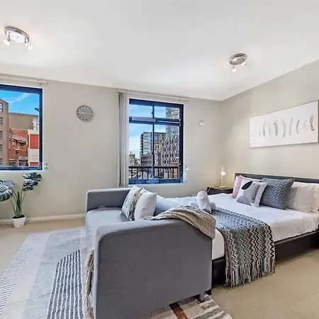 Comfy Studio Close To Central, Usyd & Utsには台所が備わっており、自身で食事を作ることができます。 宿泊施設はPaddy's Marketsシティレールから徒歩で5分の場所にあります。